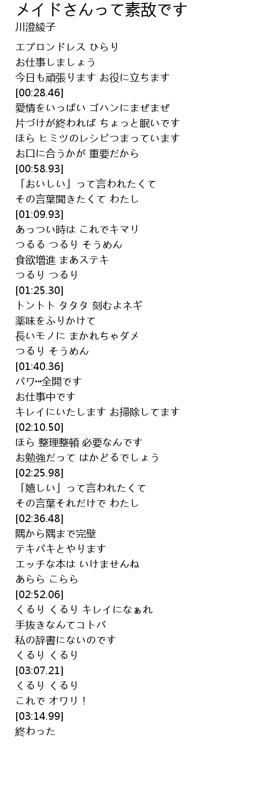 | [02:03.06] | キレイにいたします お掃除してます |