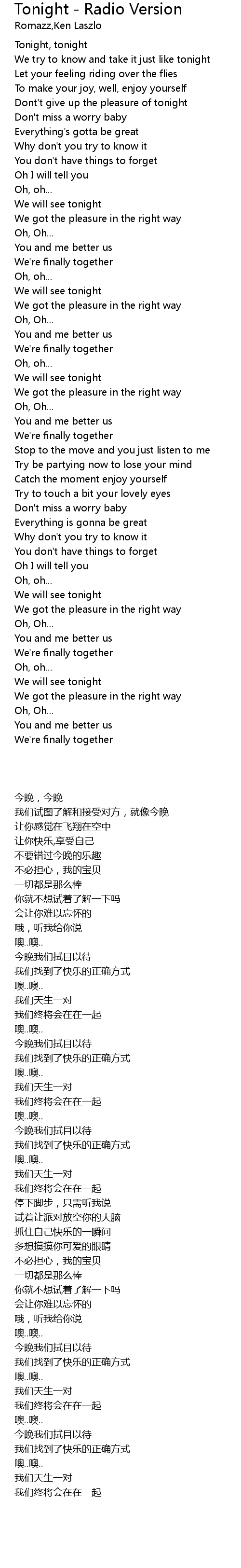Tonight, tonight |