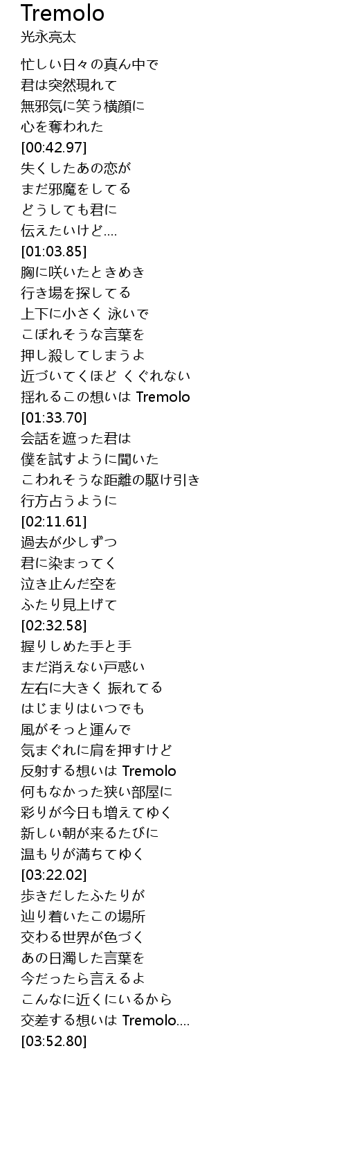 | [02:53.57] | 反射する想いは Tremolo |