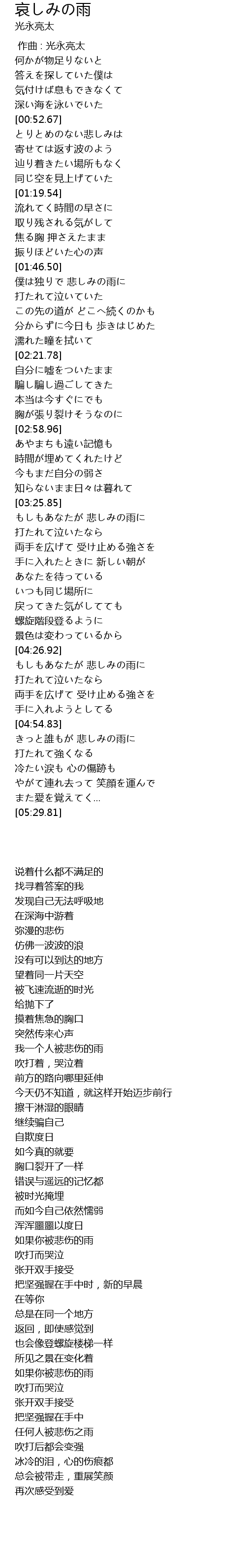 | [04:55.21] | きっと誰もが 悲しみの雨に |
