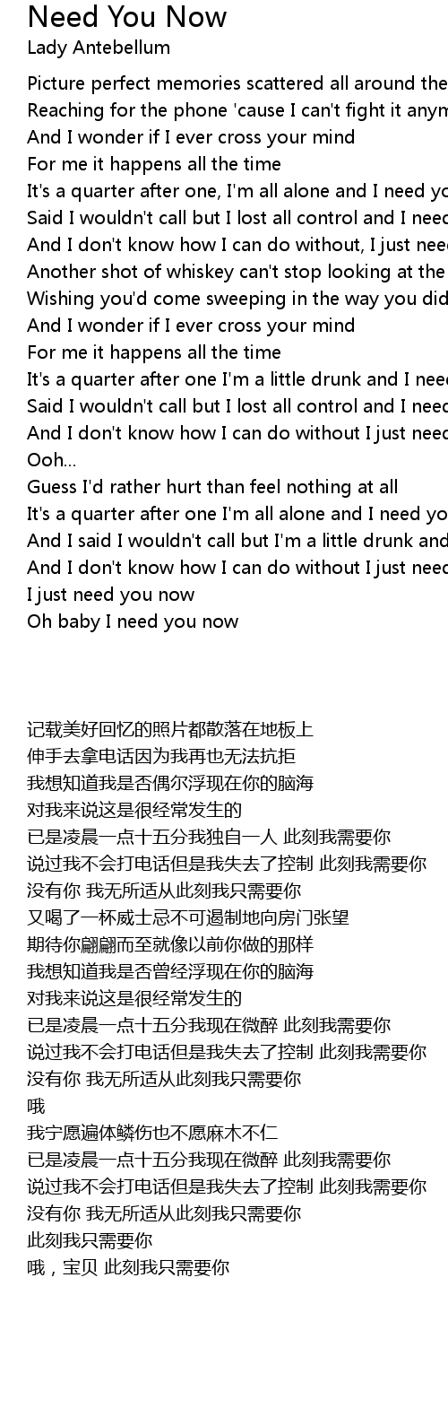Said I wouldn't call but I lost all control and I need you now |