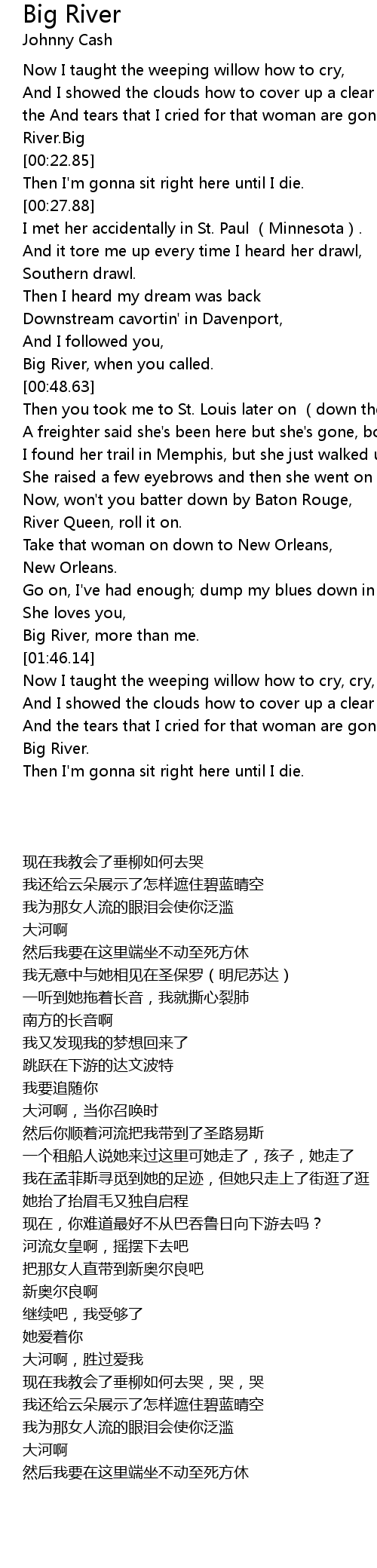 | [00:46.10] | Big River, when you called. |
