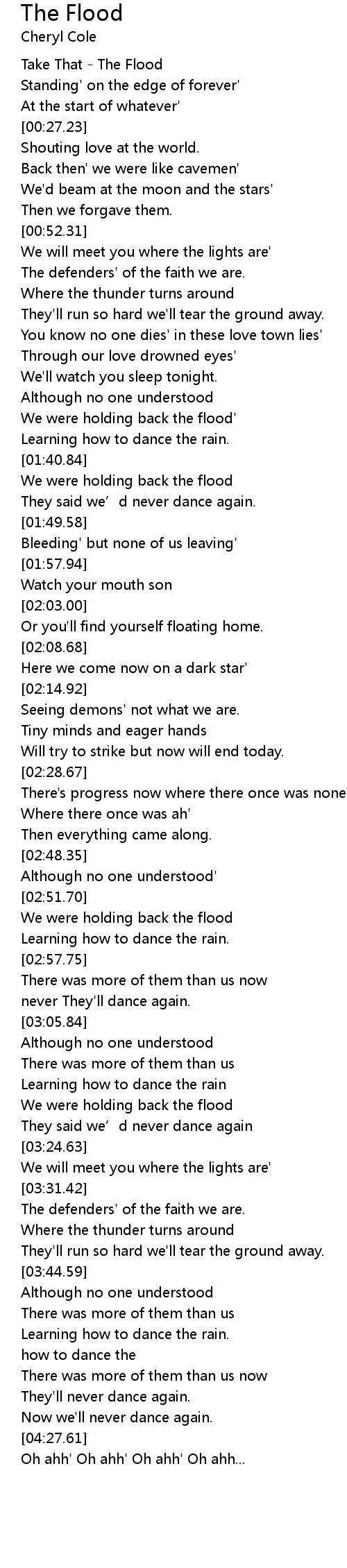 | [00:02.08] | Take That The Flood |