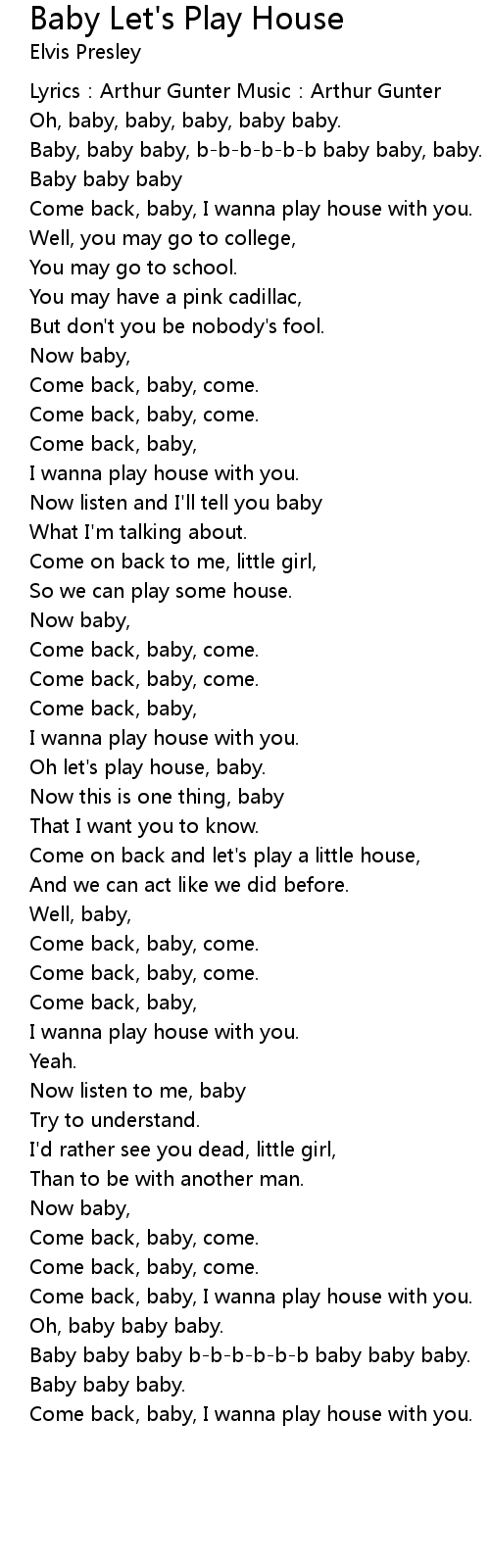 | Come back, baby, I wanna play house with you. | |