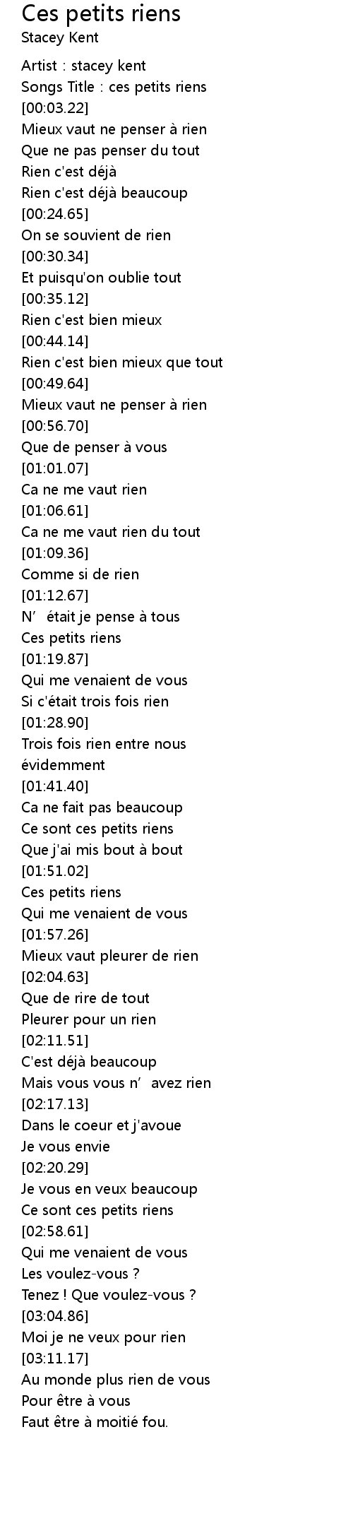 | [00:01.53] | Songs Title: ces petits riens |