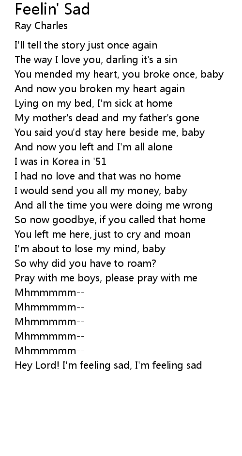 Hey Lord! I'm feeling sad, I'm feeling sad |