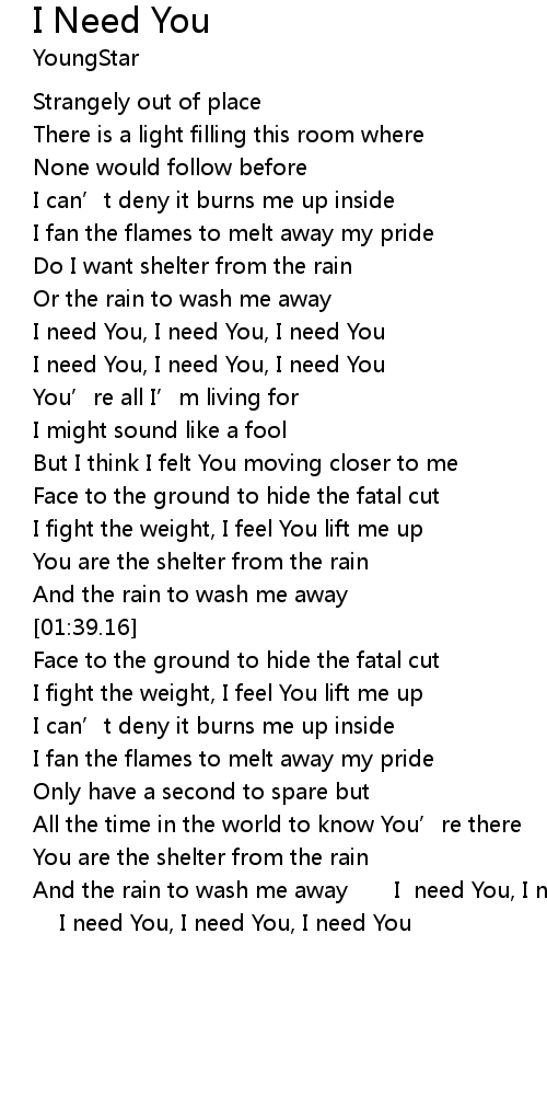 | [00:50.45] | I need You, I need You, I need You |