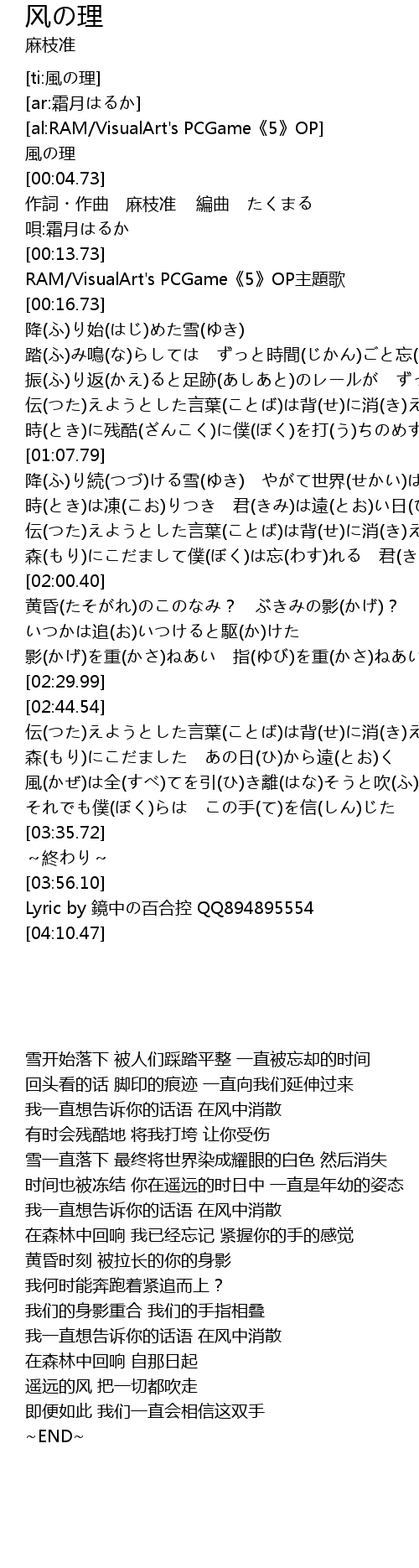 | [00:15.03] | RAM/VisualArt's PCGame《5》OP主題歌 |