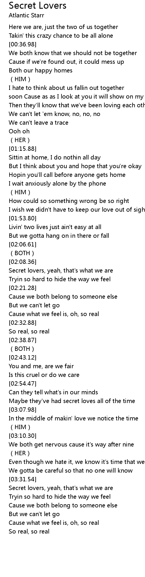 | [03:36.09] | Secret lovers, yeah, that's what we are |