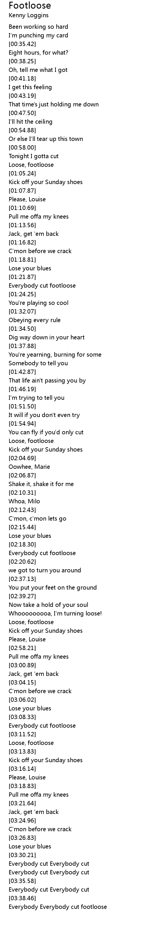 Everybody cut footloose |