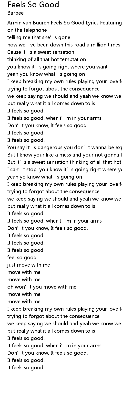 | [00:04.12] | Armin van Buuren Feels So Good Lyrics Featuring Nadia Ali Lyrics Your on the telephone |
