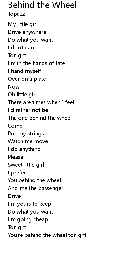 | 歌曲 | Behind the Wheel |