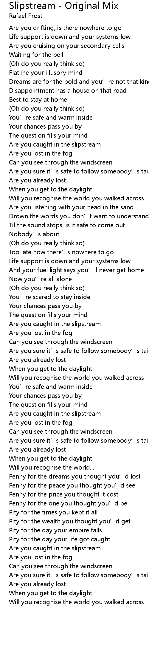 | 歌曲 | Slipstream - Original Mix |