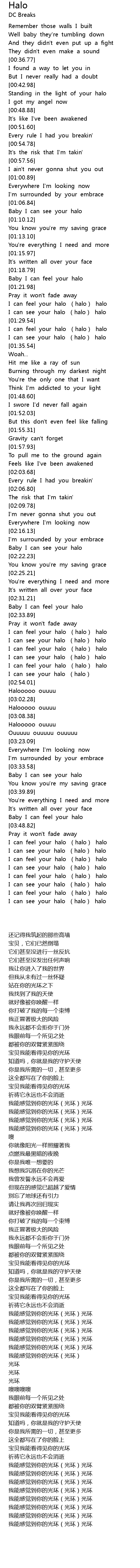 | [02:36.97] | I can feel your halo halo halo |