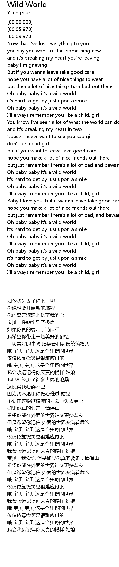 Oh baby baby it's a wild world |