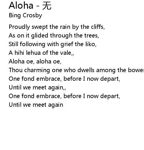 | Aloha oe, aloha oe, | |