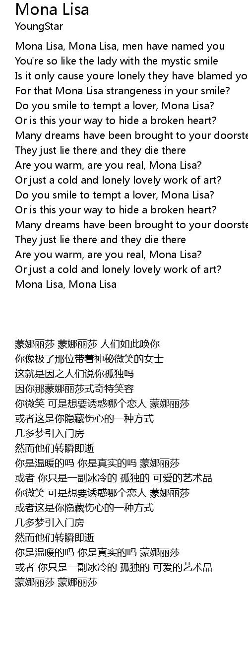 [00:00.561] Mona Lisa, Mona Lisa, men have named you