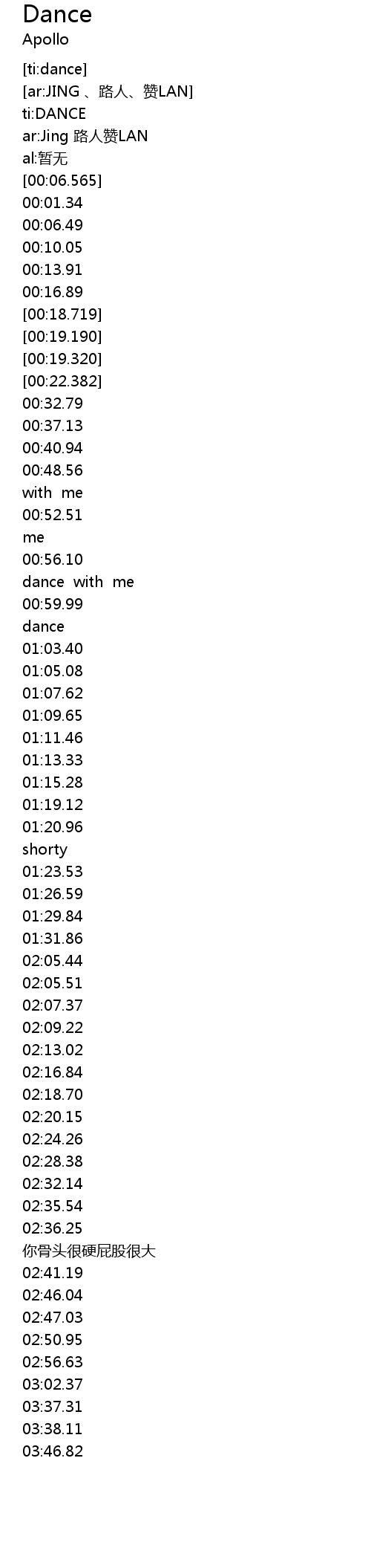 | [00:06.983]00:01.34] | gē míng: DANCE |