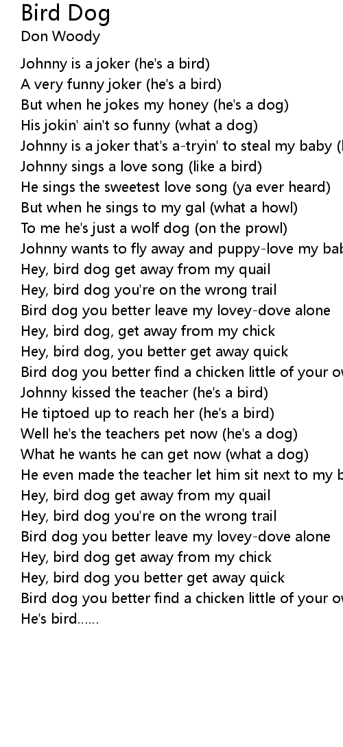 | Johnny is a joker that's a-tryin' to steal my baby (he's a bird dog) | |