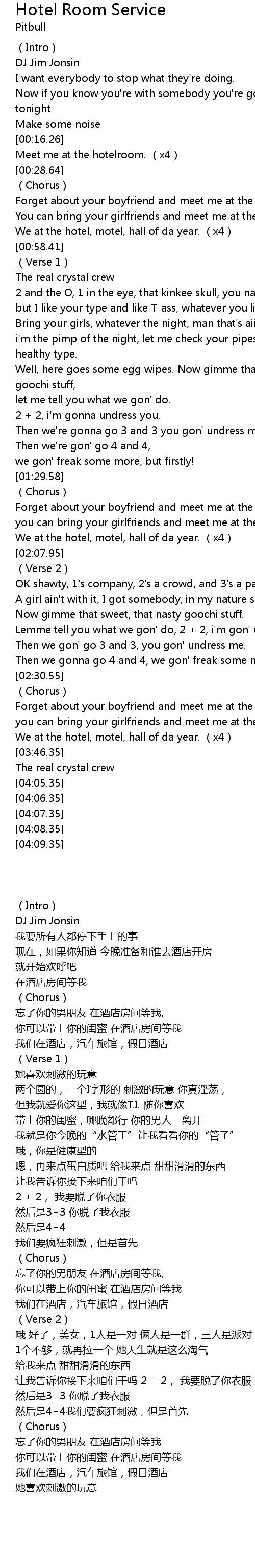 | [02:35.23] | you can bring your girlfriends and meet me at the hotelroom. x2 |