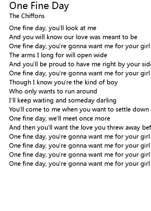 One fine day, you're gonna want me for your girl |