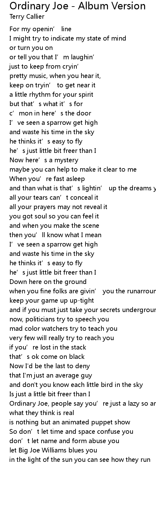 | 歌曲 | Ordinary Joe - Album Version |
