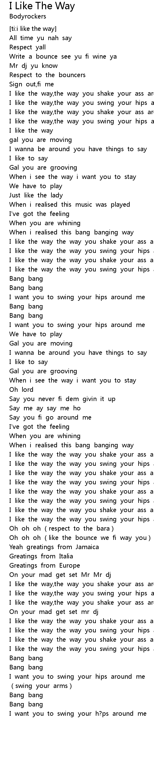 | [03:07.467] | I like the way the way you swing your hips around me |