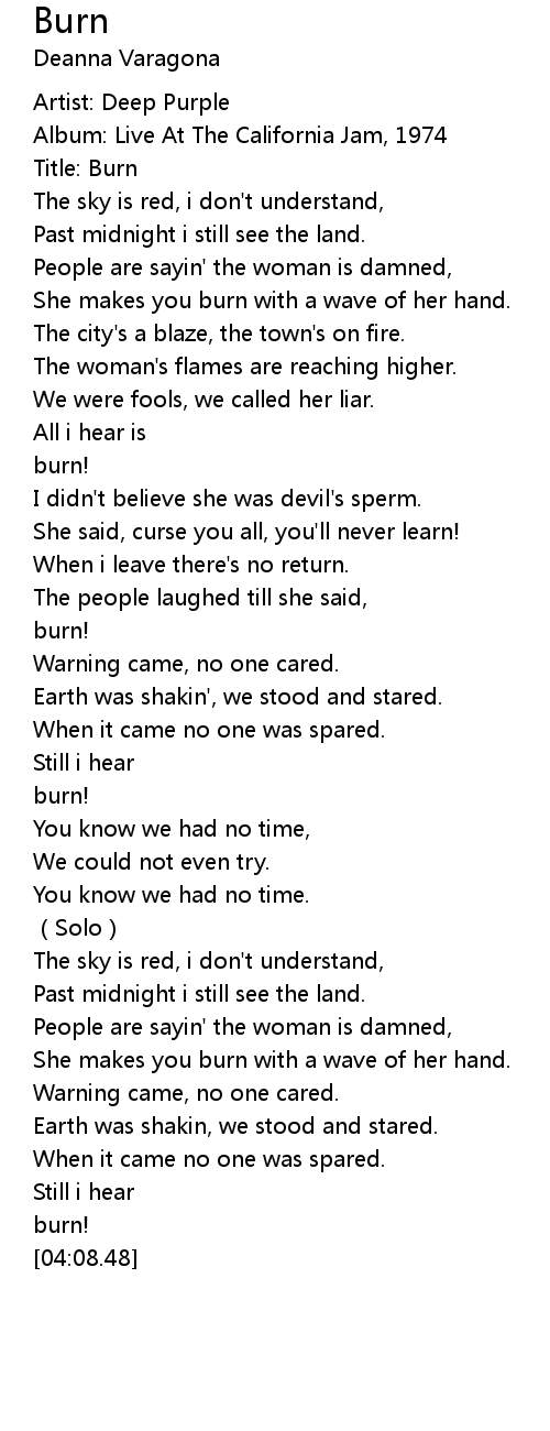 | [03:36.82] | She makes you burn with a wave of her hand. |