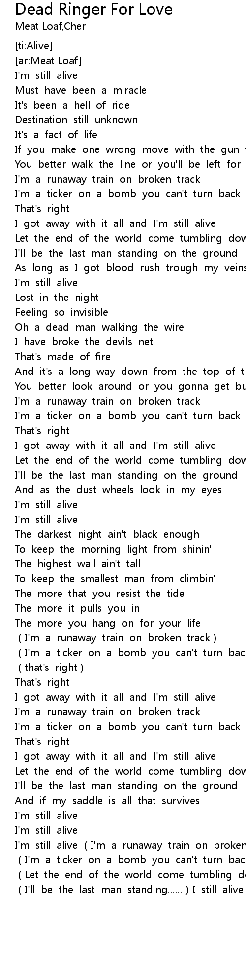 | [03:44.24] | I' m still alive I' m a runaway train on broken track |