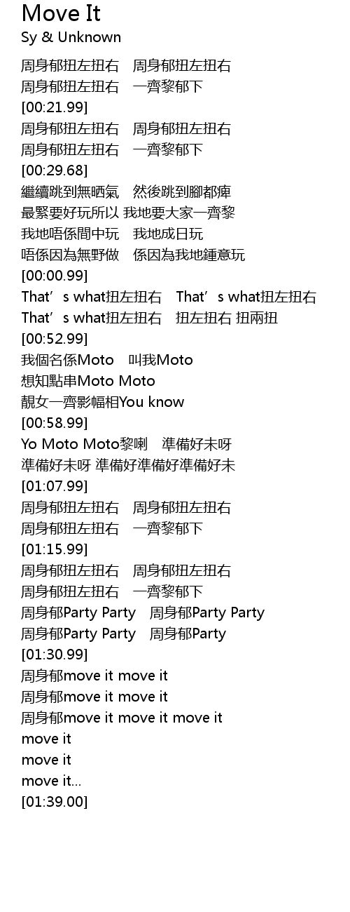 | [01:31.00] | 周身郁move it move it |