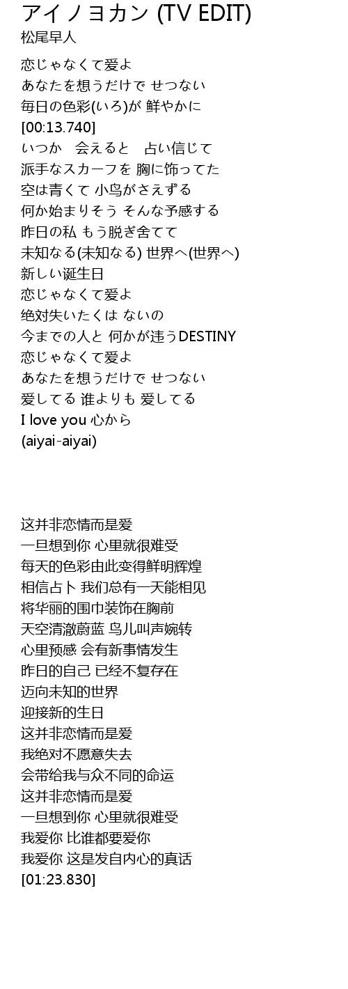 | 歌曲 | アイノヨカン (TV EDIT) |