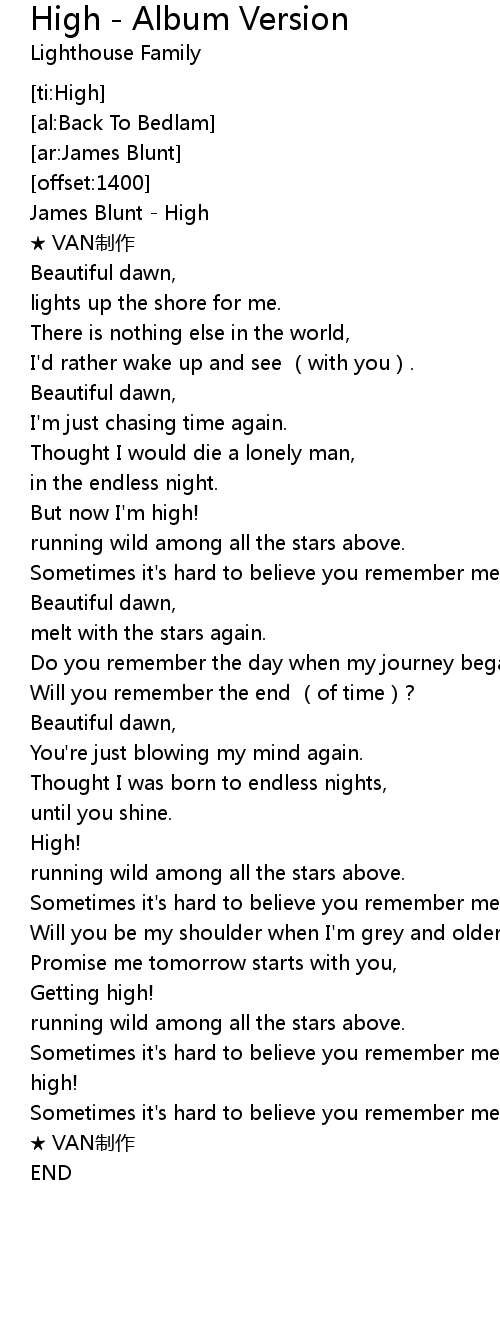 | [00:00.00] | James Blunt - High |