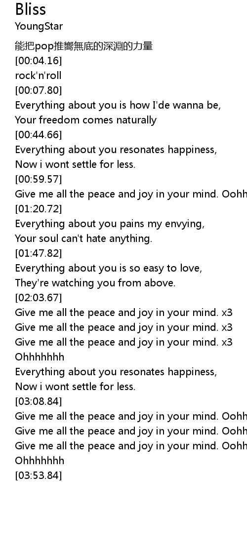 | [02:06.03] | Give me all the peace and joy in your mind. x3 |