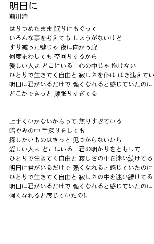 | 明日に君がいるだけで 强くなれると感じていたのに | |