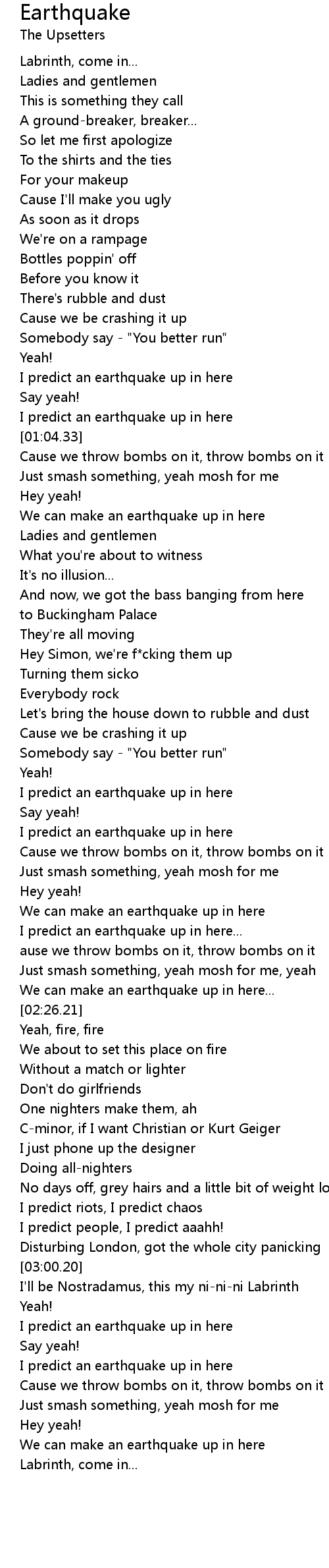 I predict an earthquake up in here |