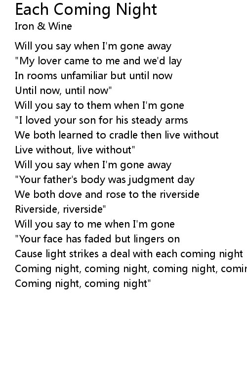 Coming night, coming night, coming night, coming night |