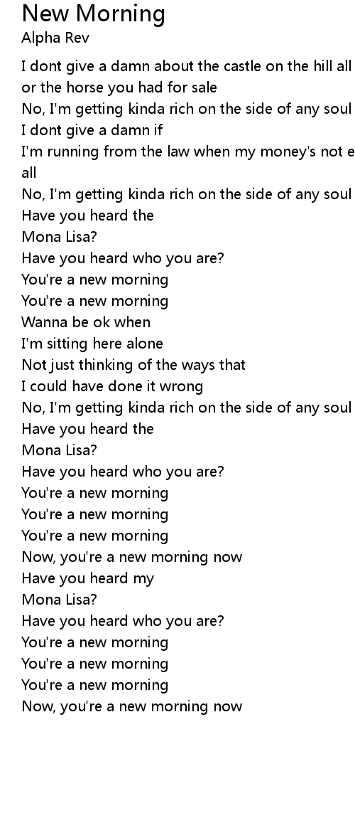 You're a new morning |