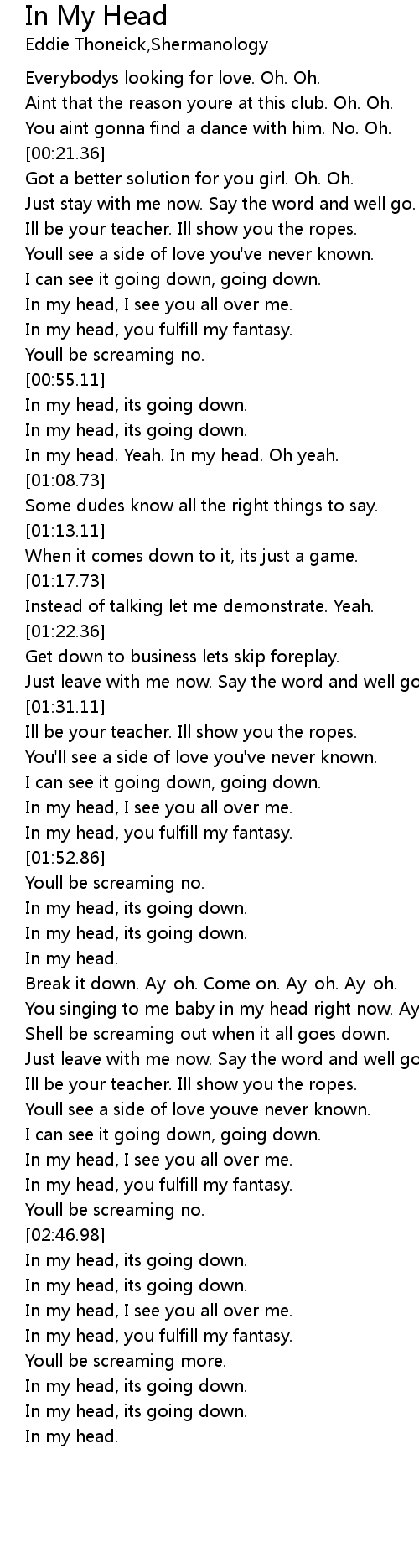 [02:08.50] You singing to me baby in my head right now. Ay-oh. Ay-oh. Come on.