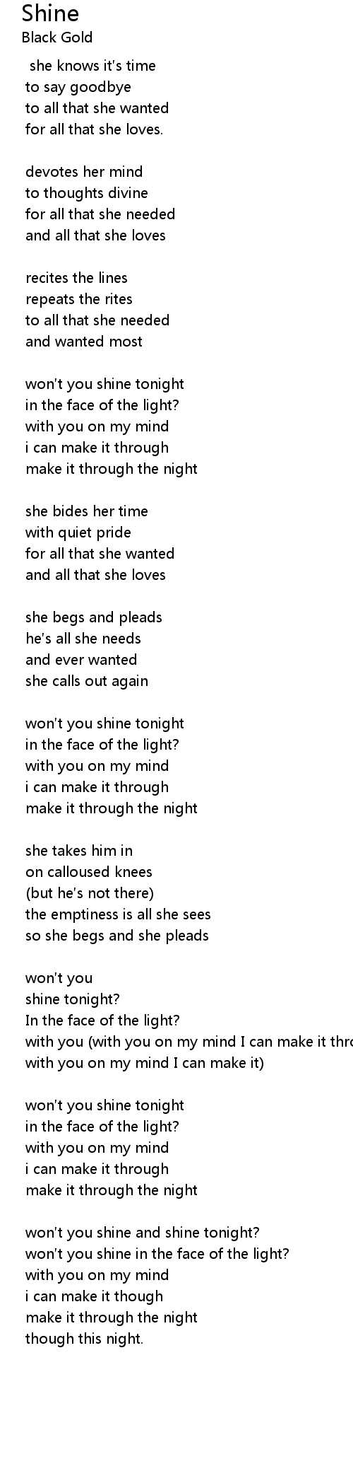 | won t you shine tonight | |