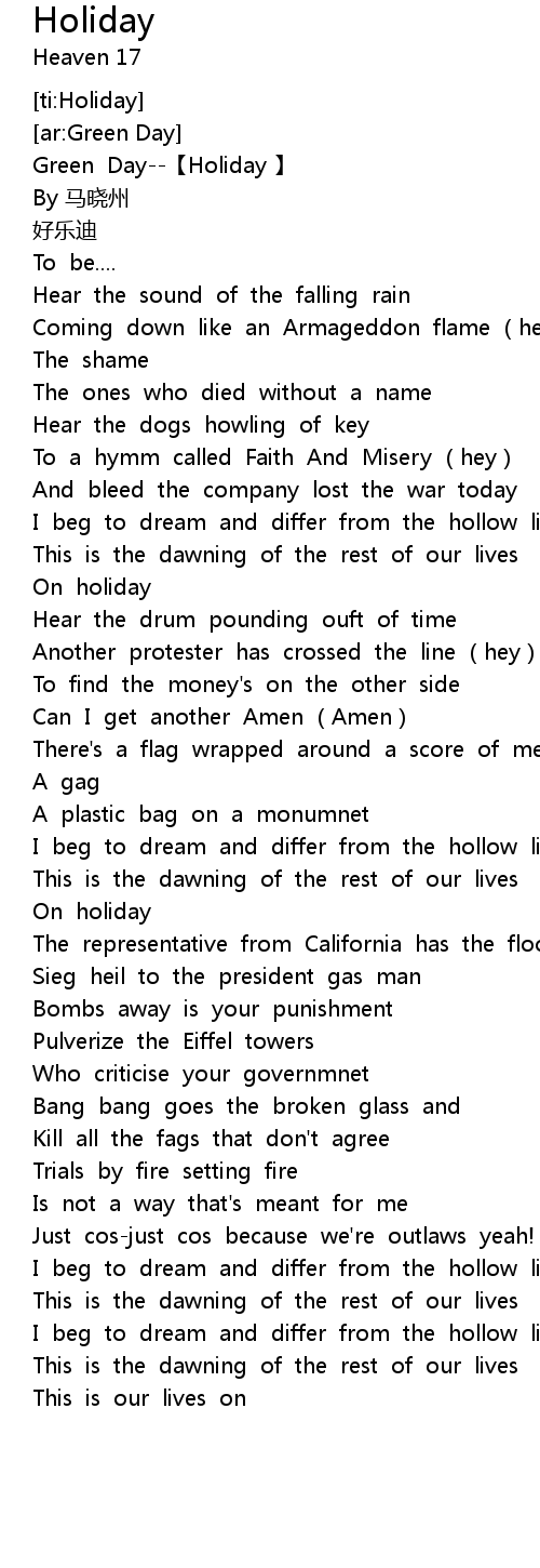 | [00:00.05] | Green Day--【Holiday 】 |