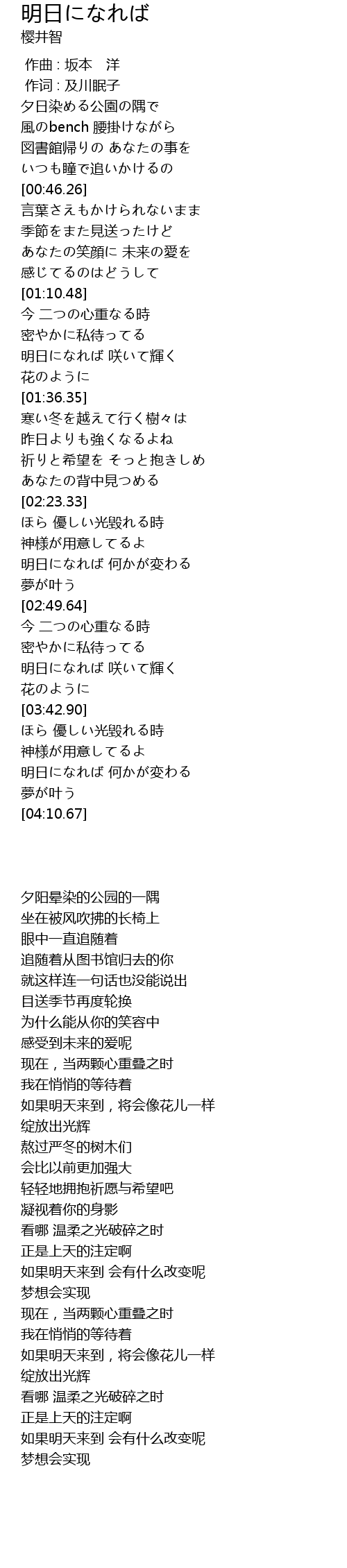 | [03:30.54] | 明日になれば 咲いて輝く |