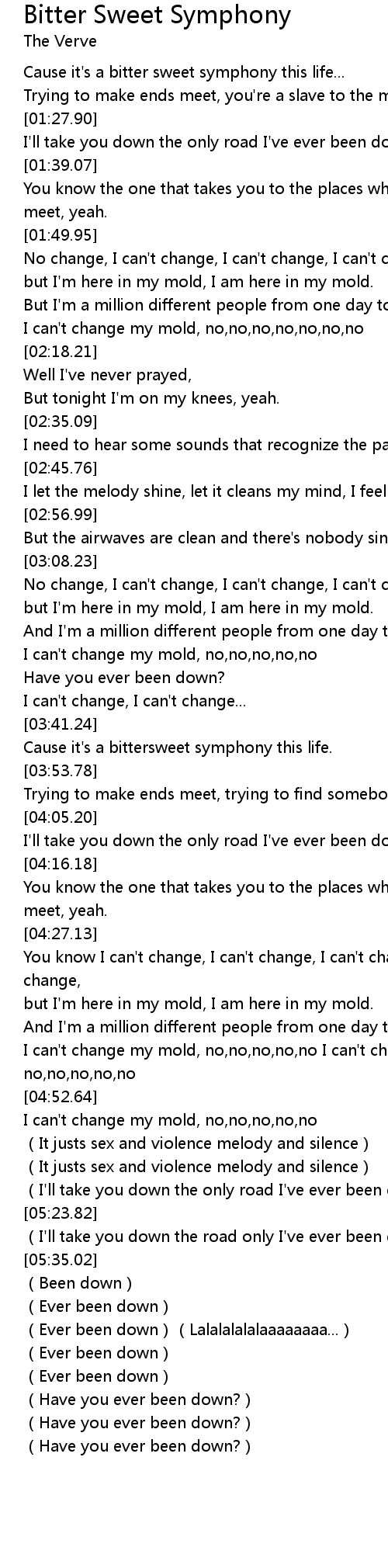 | [03:45.55] | Cause it's a bittersweet symphony this life. |