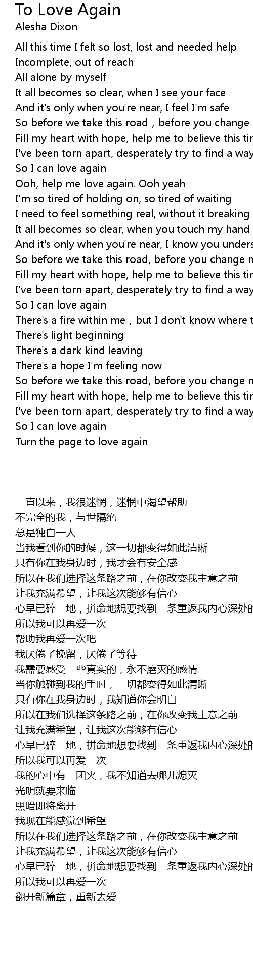 | [01:16.10] | Ooh, help me love again. Ooh yeah |