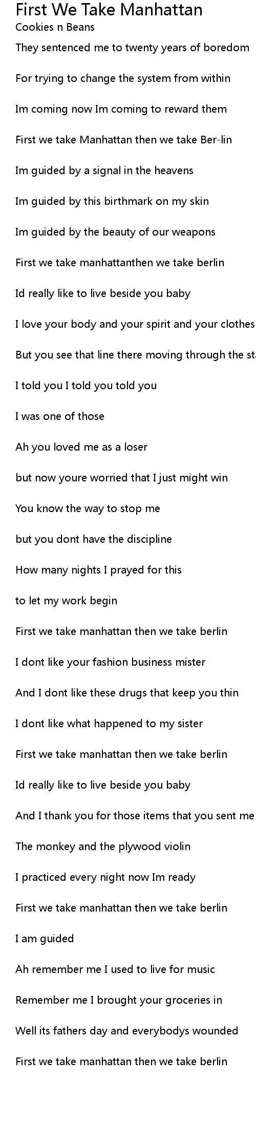 First we take manhattan then we take berlin |