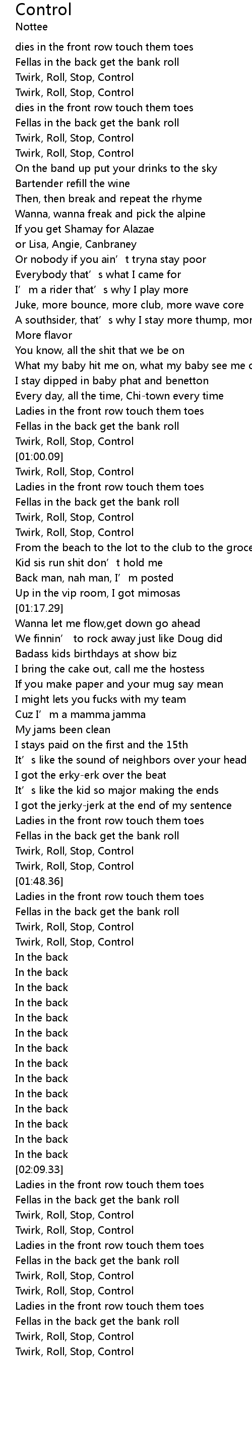 | [01:05.89] | Twirk, Roll, Stop, Control |