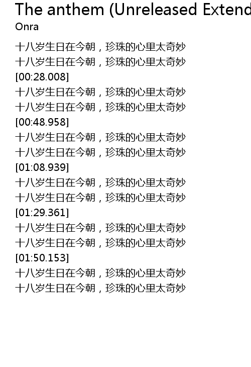 | [00:23.873] | 十八岁生日在今朝,珍珠的心里太奇妙 |