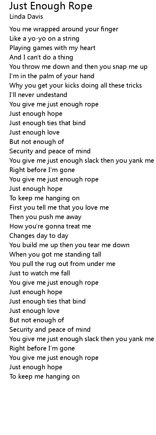 You give me just enough rope |