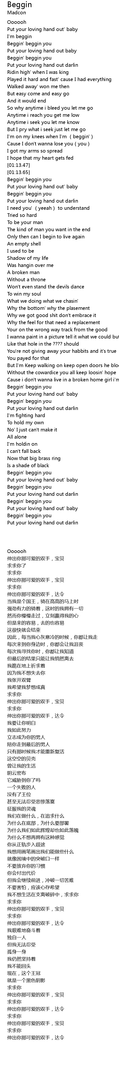 | 歌曲 | Beggin |