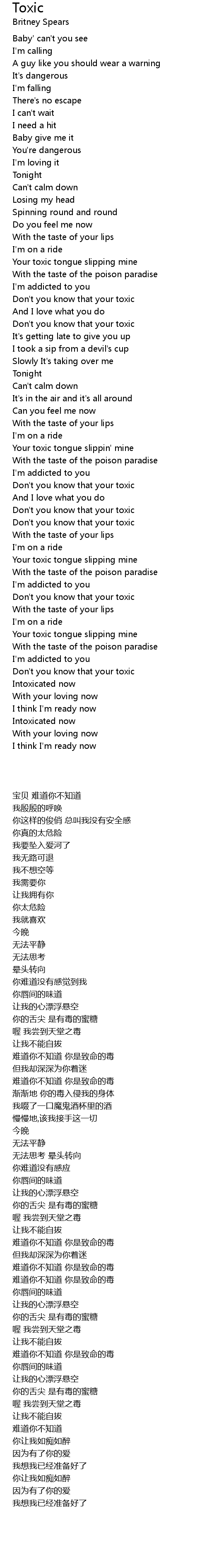 Don't you know that your toxic |