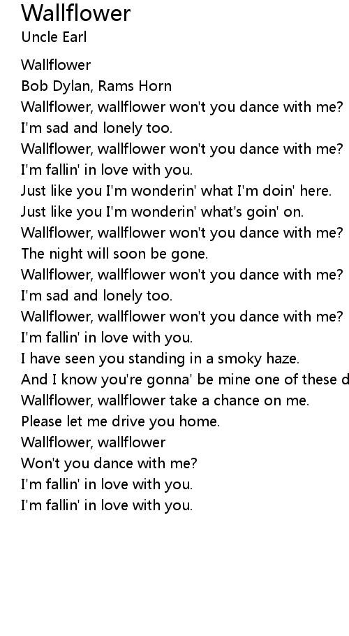 Wallflower, wallflower won't you dance with me? |
